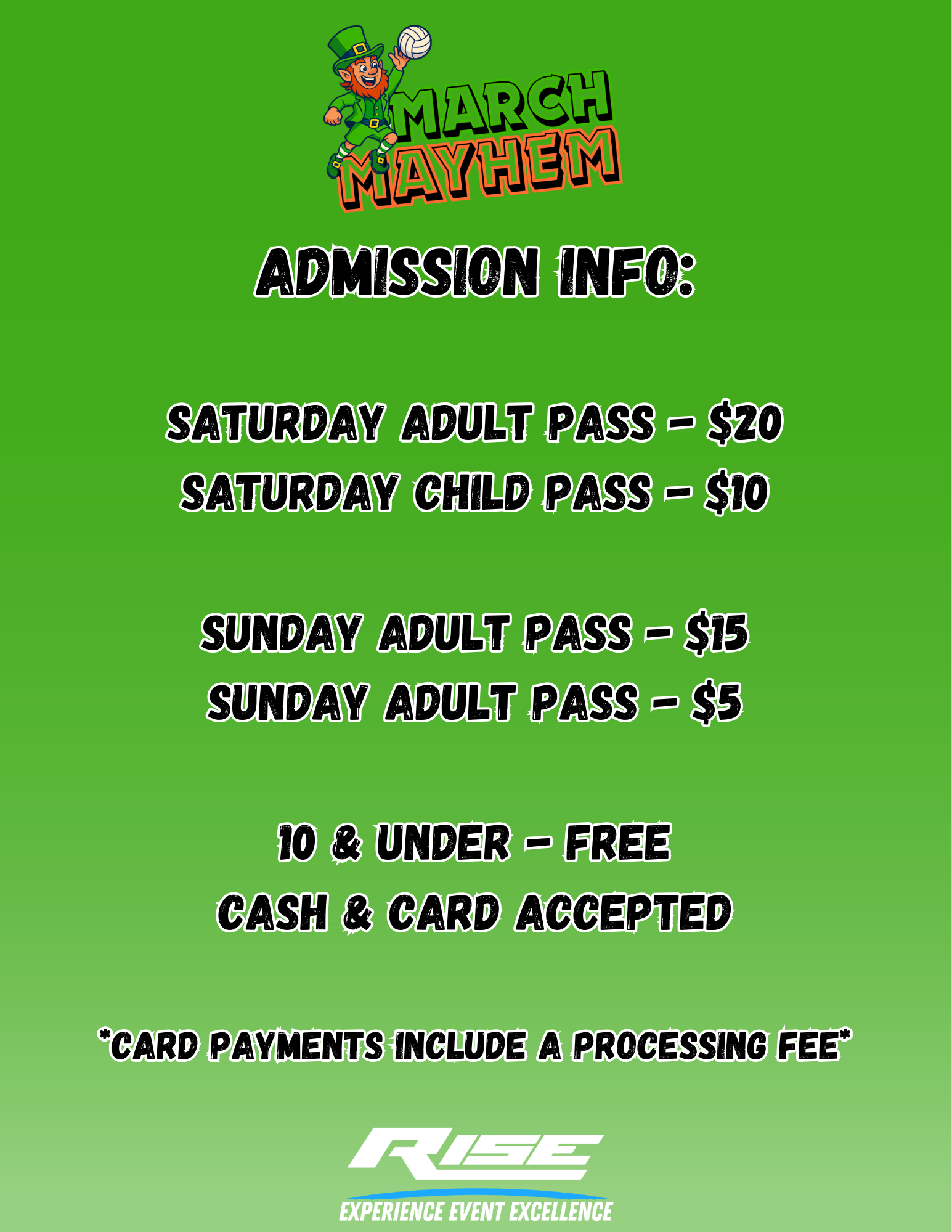 All event related questions should be directed to RISE Volleyball at volleyball@riseevents.us or call 704-860-8230.